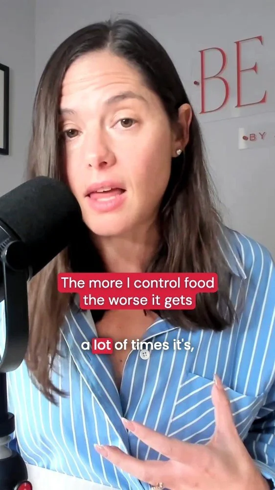 This feelings leads to that start-and-stop cycle that we often share about. The shame and guilt intensify after overeating, so you try more rigid and restrictive behaviors to make up for being “bad,” only to feel out of control around food because you’ve become hyper-aware that you can’t have it, and then you overindulge.